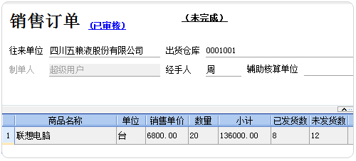 通過訂單查詢,可查詢到所有的訂單執行情況,哪些訂單已經發貨完成(執行完成),哪些訂單還剩貨品未發出,具體是多少。通過這個流程,即可達到管理訂單的目的。
